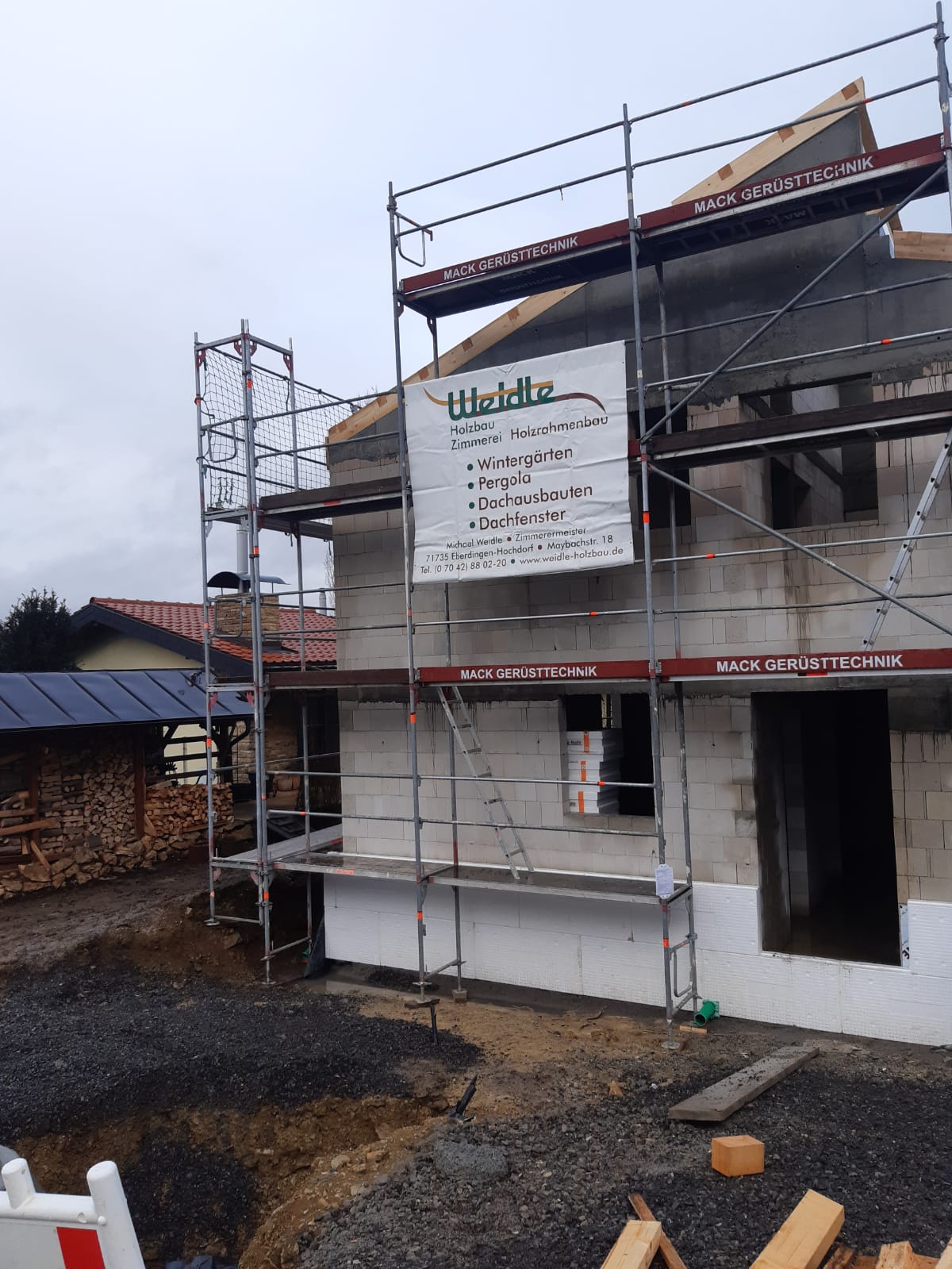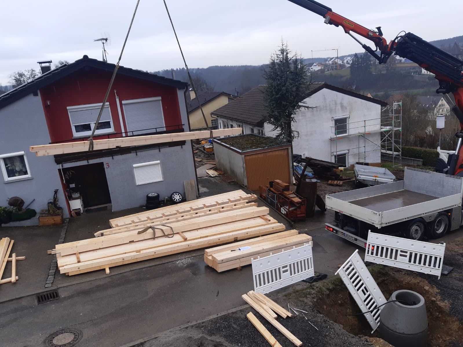 Zimmerer- und Dachdeckerarbeiten an Einfamilienwohnhaus.